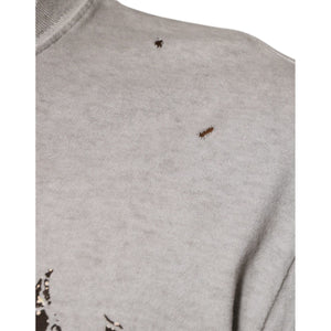 • Dolce & Gabbana Gray Printed Cotton Crewneck Pullover Sweater