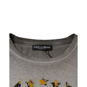 Dolce & Gabbana Gray Printed Cotton Crewneck Pullover Sweater