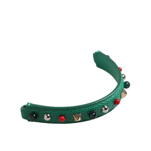 Dolce & Gabbana Green Embellished Leather Bag Handle Women Shoulder Strap