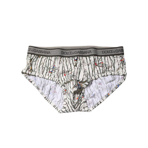 Dolce & Gabbana Ivory Bird Print Cotton Regular Brief Underwear