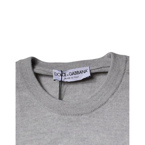 Dolce & Gabbana Light Gray Wool Crew Neck Pullover Sweater