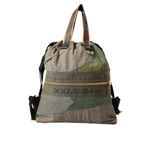 Dolce & Gabbana Military Green Patchwork Rucksack Backpack Bag