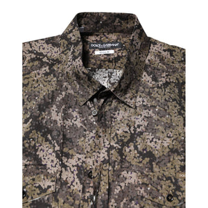 Dolce & Gabbana Multicolor Camouflage Button Down GOLD Shirt