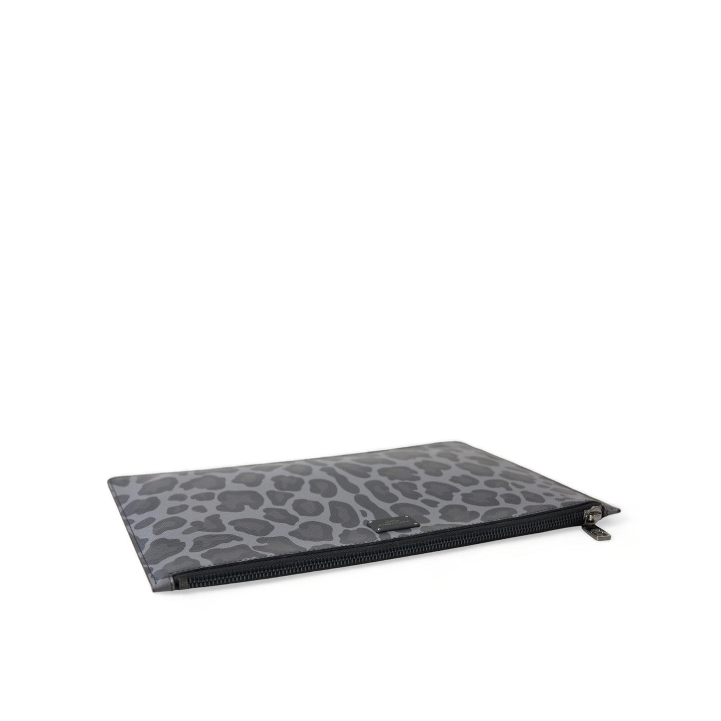 Dolce & Gabbana Multicolor Leopard Jacquard Logo Plaque Document Briefcase Bag