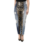 Gorgeous brand new, 100% Authentic Dolce & Gabbana patchwork tapered high waist denim jeans.