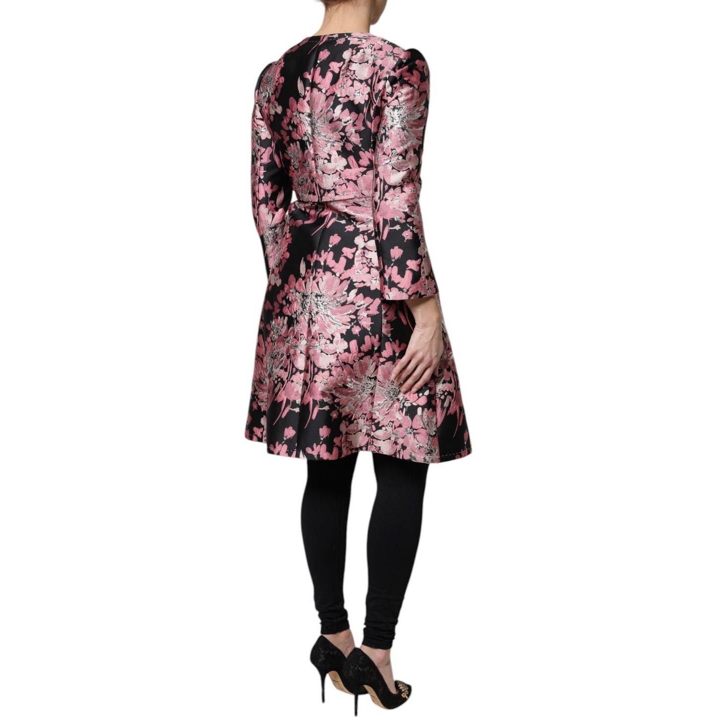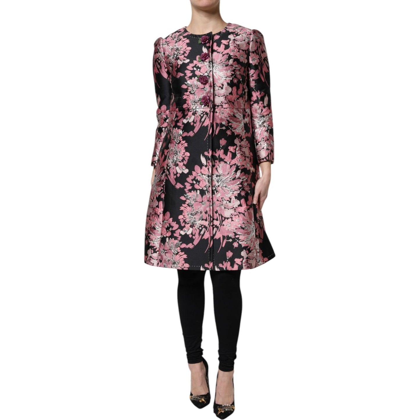 Dolce & Gabbana Pink Black Floral Brocade Trenchcoat Jacket