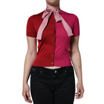 Dolce & Gabbana Pink Short Sleeves Pullover Ascot Collar Top