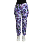 Dolce & Gabbana Purple Floral Print Tapered Cotton Pants