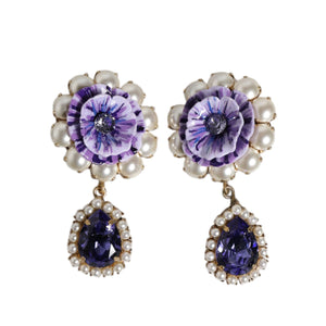 Dolce & Gabbana Purple Flower Pearl Teardrop Crystals Clip On Earrings