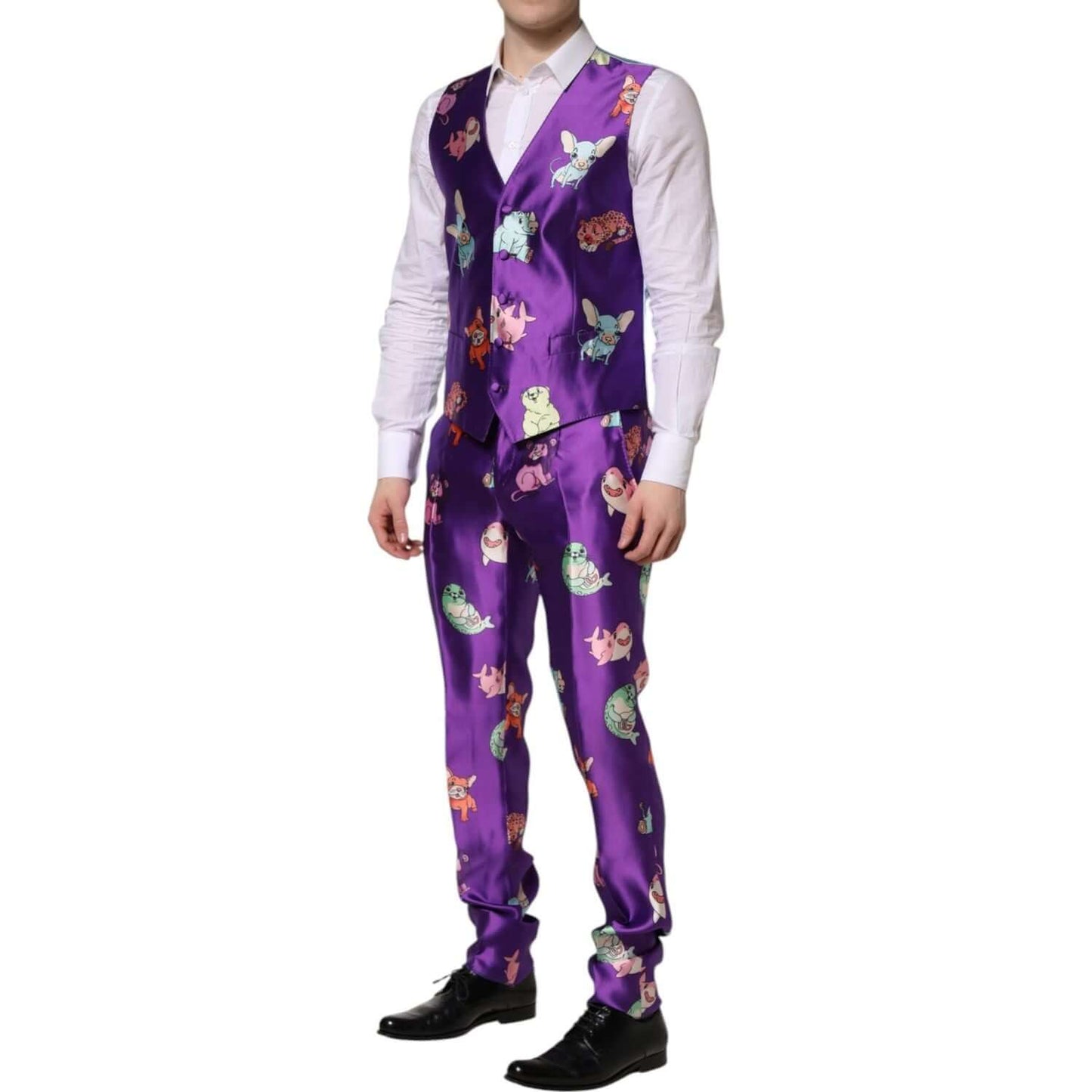 Dolce & Gabbana Purple Silk Animal Print 3 Piece Suit