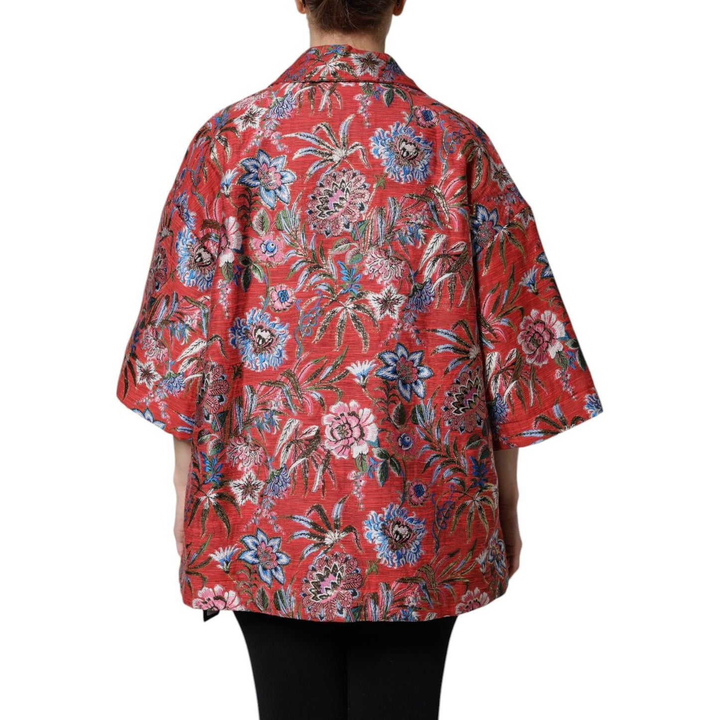 Dolce & Gabbana Red Floral Jacquard Button Down Coat Jacket