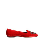 Dolce & Gabbana Red Velvet DG Heart Loafers Flats Shoes
