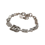 Dolce & Gabbana Silver Brass Crystal DG Logo Charm Embellished Bracelet