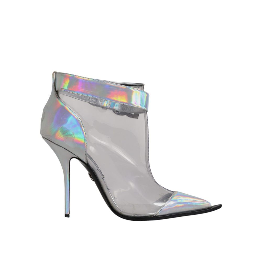 Dolce & Gabbana Silver Iridescent Pointed Short Boots Shoes