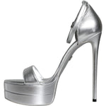 Dolce & Gabbana Silver Leather Platform Keira Sandals Shoes
