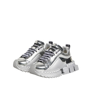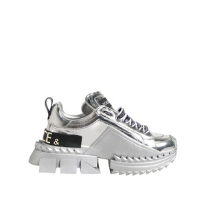Dolce & Gabbana Silver Leather Super Queen Sneakers Shoes