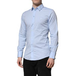 Dolce & Gabbana Sky Blue Cotton GOLD Long Sleeves Dress Shirt