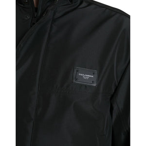 Dolce & Gabbana Black Polyester Logo Plaque Hooded Jacket