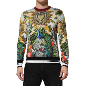 Dolce & Gabbana Tropical Heart Crown Silk Pullover Sweater