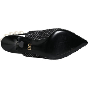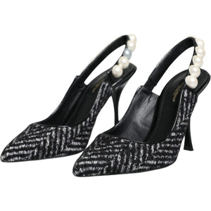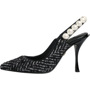 Dolce & Gabbana White Black Chevron Faux Pearl Slingback Shoes LA11760-35