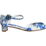 Dolce & Gabbana White Blue Majolica Print Ankle Strap Sandals Shoes