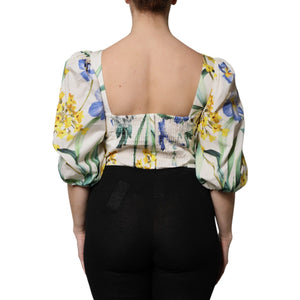 Dolce & Gabbana White Floral Puff Sleeves Crop Blouse Top