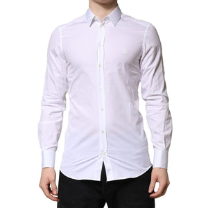 Dolce & Gabbana White GOLD Crown Cotton Dress Formal Shirt