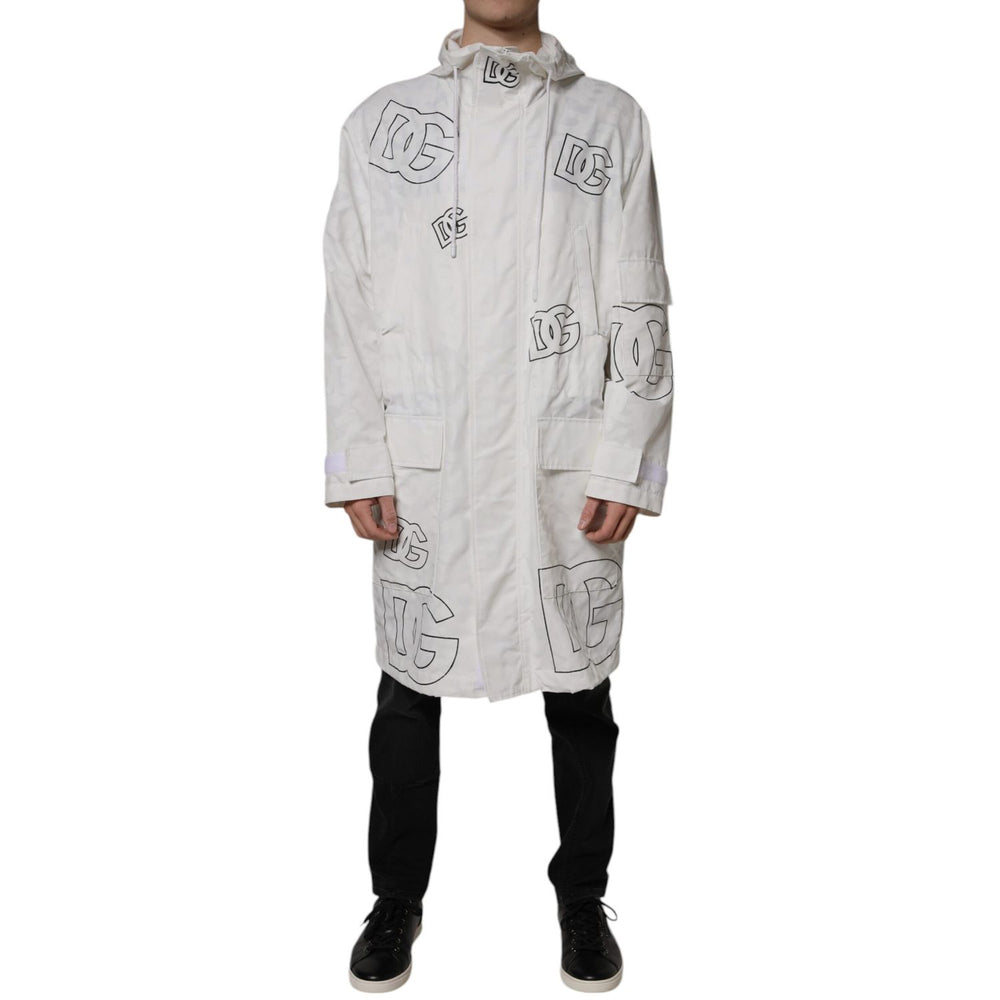Dolce & Gabbana White Hooded Parka Polyester Trench Coat Jacket
