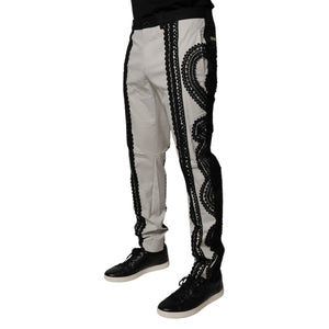 Dolce & Gabbana White Lace Trim Mid Waist Dress Formal Pants