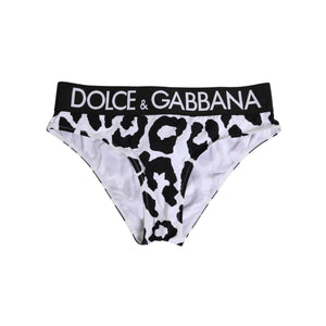 Dolce & Gabbana White Leopard Nylon High Waist Panty Underwear