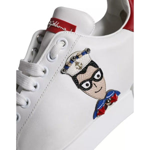 Dolce & Gabbana White Patch Calfskin Nappa Portofino Sneakers Shoes