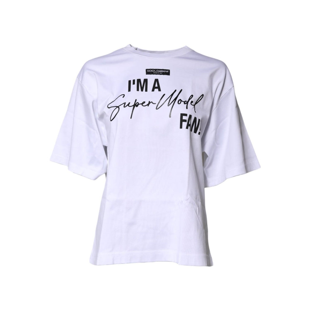 Dolce & Gabbana White Printed Cotton Round Neck Top T-shirt