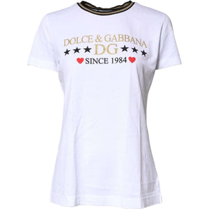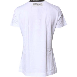 Dolce & Gabbana White Printed Round Neck Top Cotton T-shirt