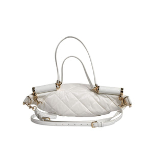 Gorgeous brand new, 100% Authentic Dolce & Gabbana white quilted finish gold-tone logo plaque two-way zip fastening detachable adjustable waist strap flat top handles main compartment internal patch pockets internal zip-fastening pocket.