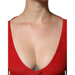Dondup Red Acetate Short Sleeves Plunging Neckline Maxi Dress