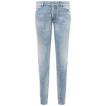 Elevate your denim game with the edgy sophistication of Dsquared²’s light wash slim-fit jeans. Crafted with precision in Italy, these jeans feature an artful display of rips and distressed detailing for an effortlessly cool, worn-in look. With a traditional five-pocket design and adorned with a bold, faux logo patch on the back, they encapsulate the brand’s penchant for rebellious luxury. Make a statement with Dsquared²’s denim mastery.