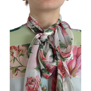 Dolce & Gabbana Multicolor Floral Patchwork Ascot Collar Top