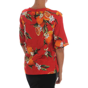 Dolce & Gabbana Orange Print Crystal-Embellished Blouse