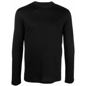Black crew neck long sleeves straight hem This item contains at least 50% materials which are certified or widely recognised as having a lower environmental impact through production and/or manufacturing processes that reduce water consumption and the use of harmful chemicals, or re-use by-products of the production process. Learn more about what makes a product Conscious on our Conscious Criteria page. Logo t-shirt Size and Fit - This piece fits true to size. We recommend you get your regular size. Model is 1,84m / 6ft 1in wearing size M