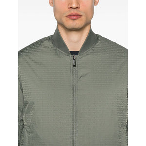 ivy green front zip fastening two side welt pockets long sleeves Jacquard nylon bomber jacket Size and Fit - This piece fits true to size. We recommend you get your regular size. Model is 1,84m / 6ft 1in wearing size 48 (IT)