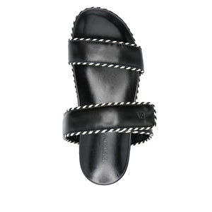 black touch-strap fastening flat rubber sole debossed logo to the front braided edge Leather sandals Size and Fit - Heel 1,2 in / 3 cm