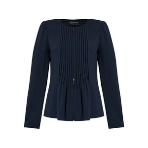 navy blue front zip fastening fully pleated long sleeves Pleater blazer jacket Size and Fit - This piece fits true to size. We recommend you get your regular size. Model is 1,75m / 5ft 8in wearing size 40 (IT)