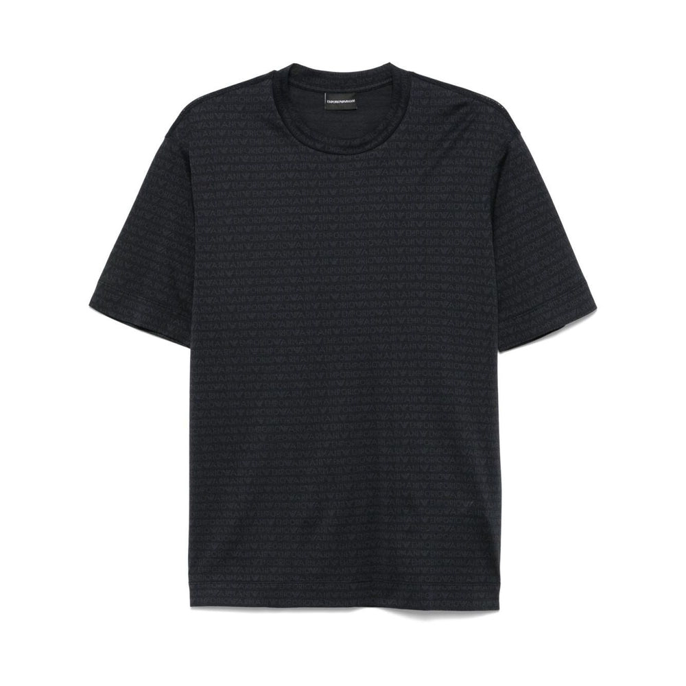 • Emporio Armani jersey T-shirt with all-over flocked logo lettering Topwear