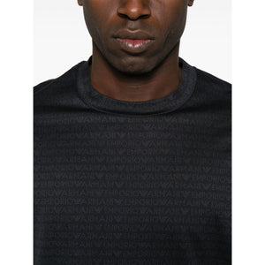 Emporio Armani jersey T-shirt with all-over flocked logo lettering Topwear