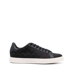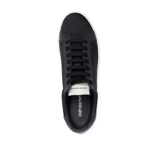 navy blue jacquard logo motif round toe front lace-up fastening internal logo stamp flat rubber sole Allover logo sneakers Size and Fit - Heel 3 cm