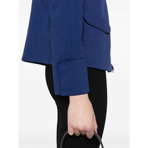 ocean blue front two-way zip fastening shoulder pads two side slit pockets press-stud fastening cuffs Cotton blazer jacket Size and Fit - This piece fits true to size. We recommend you get your regular size. Model is 1,75m / 5ft 8in wearing size 40 (IT)