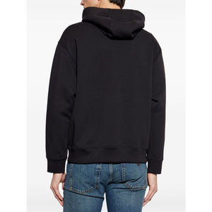 black appliqué logo slouchy drawstring hood long sleeves Logo cotton hoodie Size and Fit - This piece fits true to size. We recommend you get your regular size. Model is 1,84m / 6ft 1in wearing size M