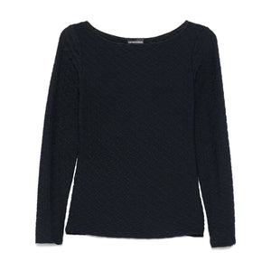 midnight blue crew neck long sleeves finished edge Jacquard boat-neck top Size and Fit - This piece fits true to size. We recommend you get your regular size. Model is 1,75m / 5ft 8in wearing size S