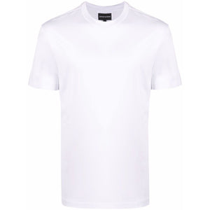 white round neck short sleeves logo patch to the front straight hem Logo cotton blend t-shirt
