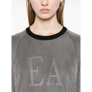 black ribbed cuffs and hem long sleeves crew neck intarsia-knit logo Logo striped sweater Size and Fit - This piece fits true to size. We recommend you get your regular size. Model is 1,75m / 5ft 8in wearing size S